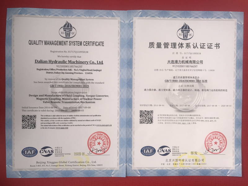 大連液力機(jī)械有限公司曾多次被評(píng)為省、市級(jí)先進(jìn)企業(yè)、文明單位;遼寧省“用戶滿意企業(yè)”、曾獲“遼寧五一獎(jiǎng)狀”,企業(yè)信譽(yù)良好,產(chǎn)品品牌廣為認(rèn)可。公司建立了完善的研制開發(fā)和質(zhì)量保證體系,在國(guó)內(nèi)液力行業(yè)較早通過ISO9001質(zhì)量體系認(rèn)證和包括職業(yè)健康、安全、環(huán)境三體系認(rèn)證,2015年又通過了國(guó)軍標(biāo)質(zhì)量體系認(rèn)證。企業(yè)連續(xù)二十余年被省、市工商局評(píng)為“重合同、守信用”單位,二〇〇二年獲國(guó)家統(tǒng)計(jì)局“遼寧省信譽(yù)優(yōu)秀企業(yè)”,連續(xù)多年被評(píng)為“AAA”級(jí)信用企業(yè),公司主導(dǎo)產(chǎn)品連續(xù)多年獲遼寧省和大連市名牌產(chǎn)品,2008年至今是大連市高新技術(shù)企業(yè)認(rèn)證企業(yè)。
